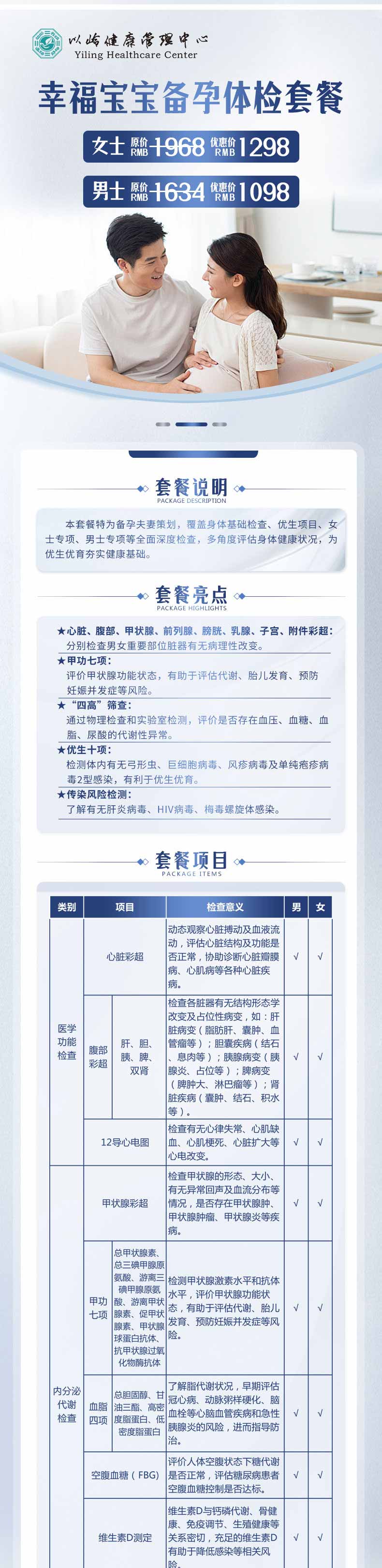 首页 > 健康体检 > 备孕男士体检套餐(1098)