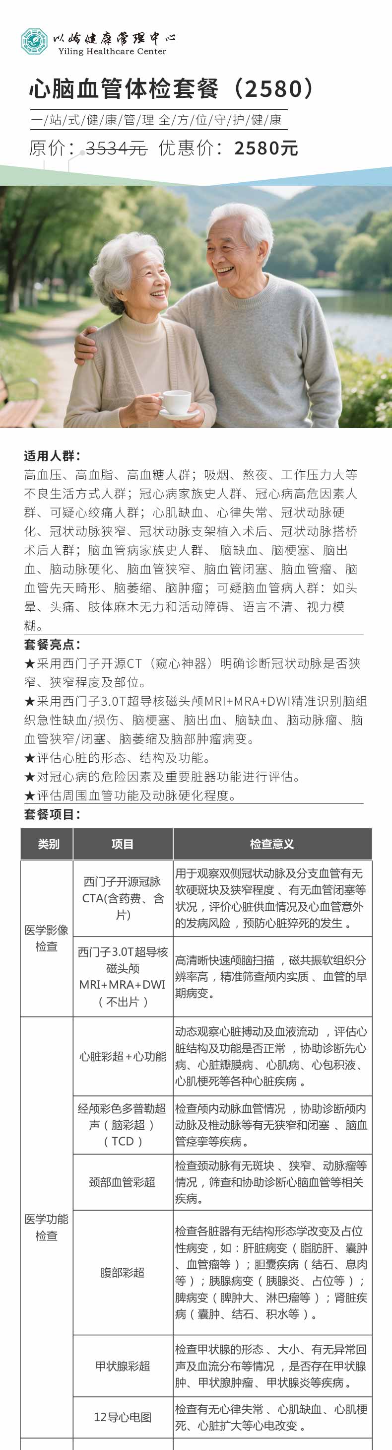 首页 > 健康体检 > 心脑血管筛查套餐(2580)