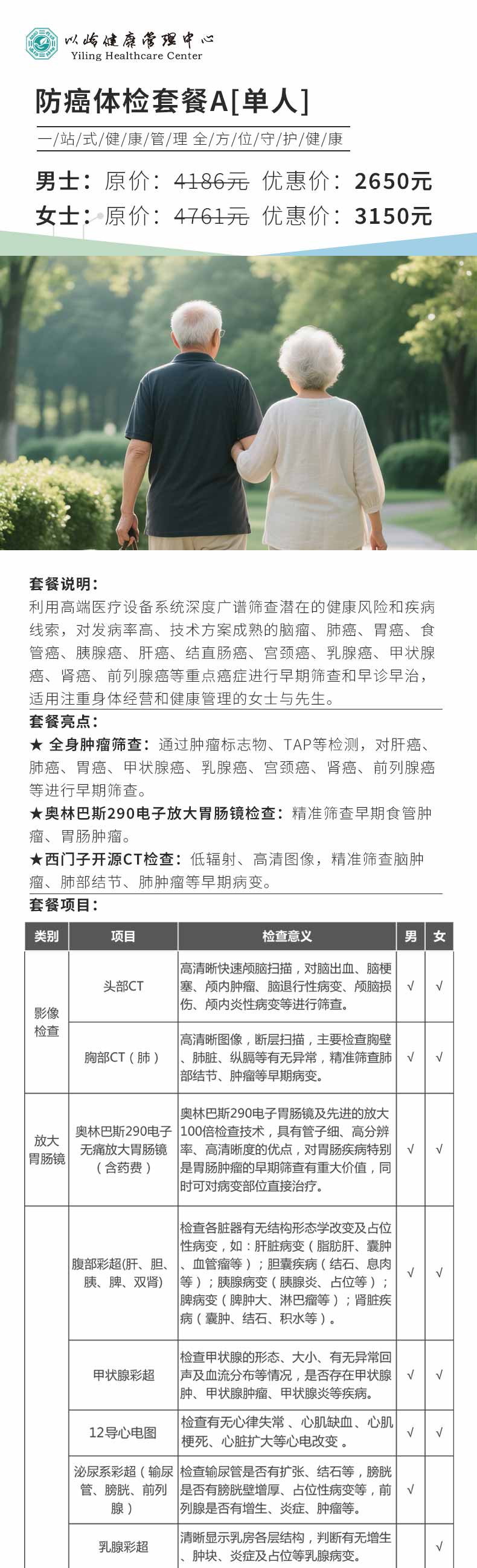 首页 > 健康体检 > 防癌筛查套餐A(女士)